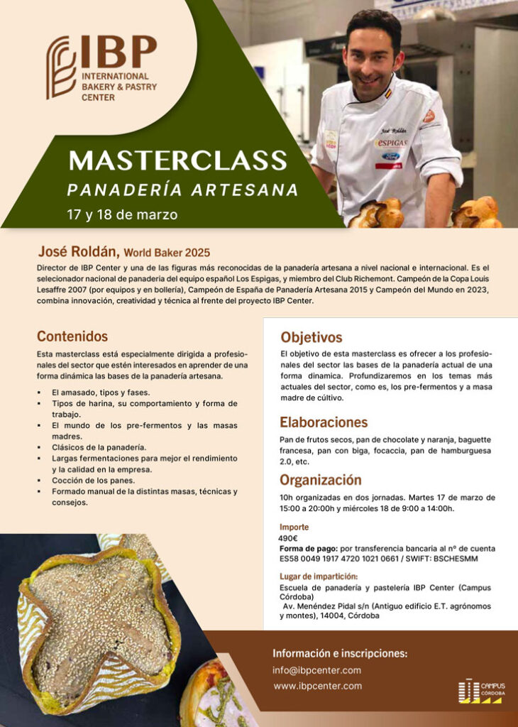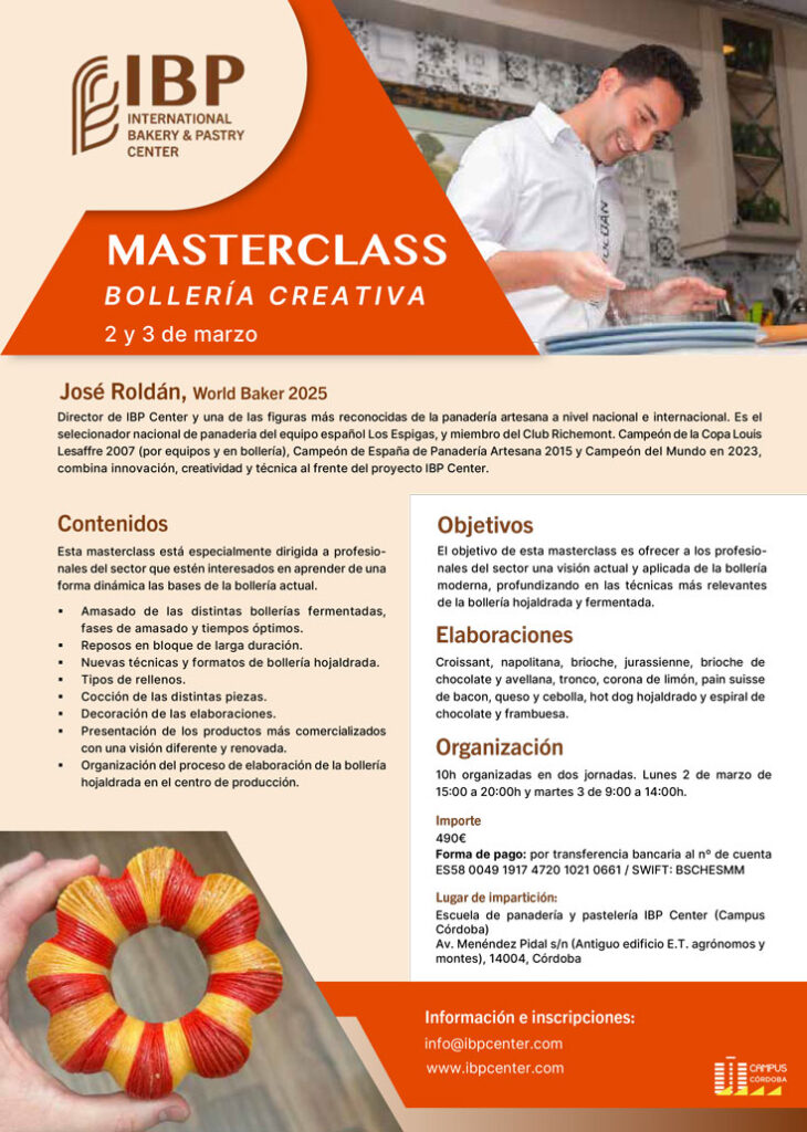 Roldán ha insistido en que la falta de profesionales es uno de los grandes retos actuales y ha apelado a la responsabilidad colectiva del sector: atraer talento joven, dignificar el oficio y generar ilusión a través de la excelencia formativa. En este sentido, explicó que IBP Center apostará por traer a los mejores panaderos del mundo mediante masterclass y programas monográficos dirigidos a profesionales, así como por abrir sus puertas a alumnado internacional, aprovechando la ubicación estratégica de Córdoba y su conexión con aeropuertos y alta velocidad. Asimismo, destacó el respaldo del Gremio de Panaderos de la Provincia de Barcelona y de Baking School Barcelona Sabadell, referentes en formación panadera en España, cuyo modelo aspira a replicarse en el sur con identidad propia.